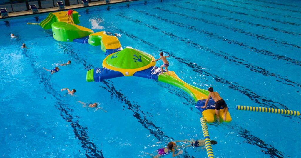 Brossard residents are invited to come and enjoy a refreshing, fun-filled time at the Complexe aquatique! On Sunday, October 26, from 1:30 p.m. to 4:20 p.m., the shallow competitive pool will be transformed into a giant playground with Wibit inflatables. Slides, jumps and fun challenges await you!